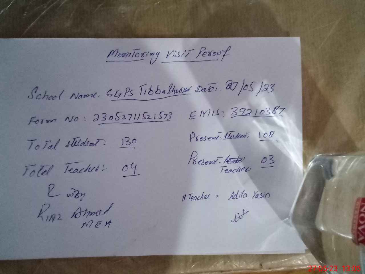 | EMIS Code: 39210387 | Name of School: GGPS TIBBA SHER KOT | |||