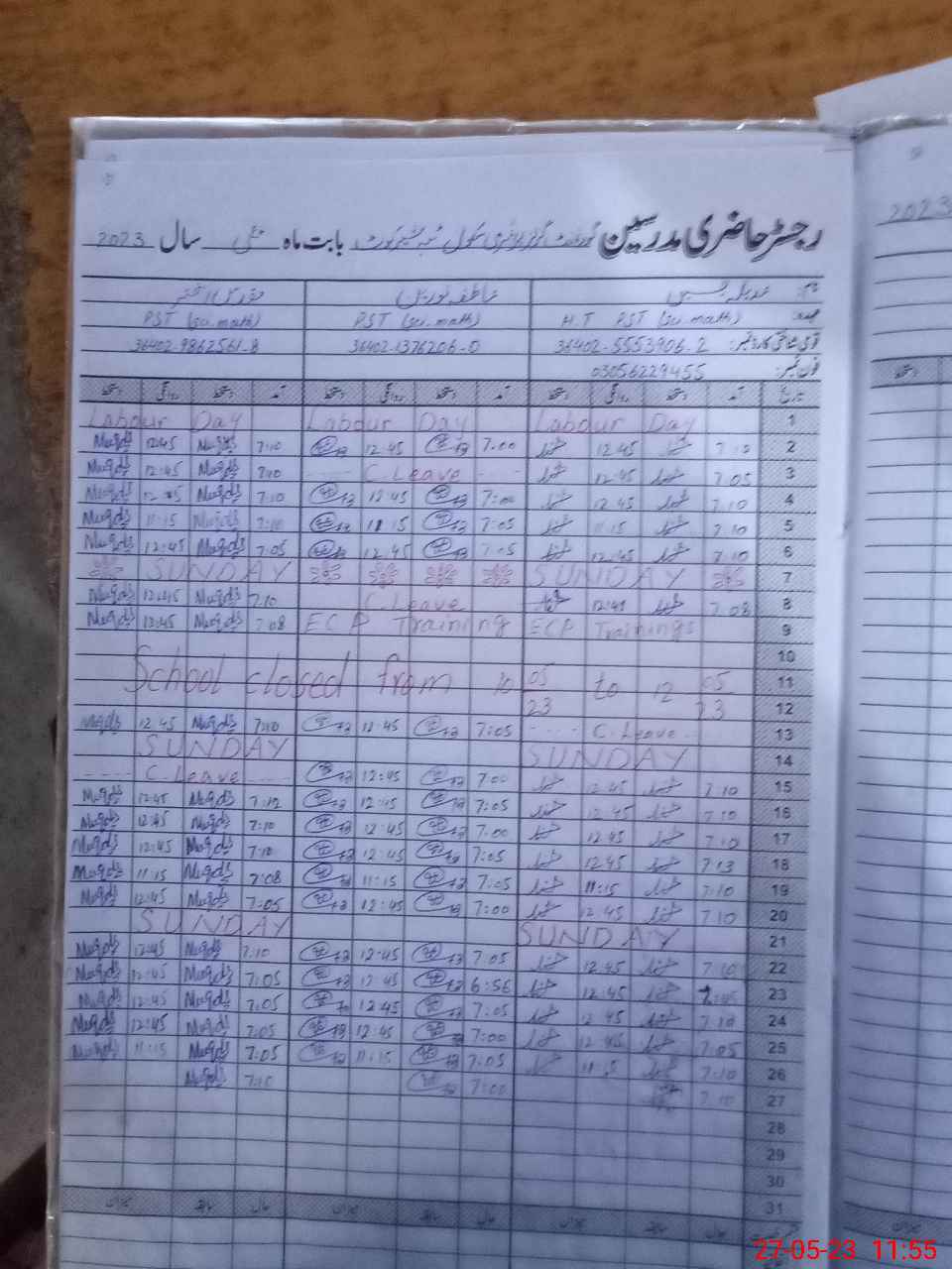 | Name: Sh**** Bu**** Designation: (School Headmaster's/Headmistress's) PST Phone/Cell Number: 03**** |