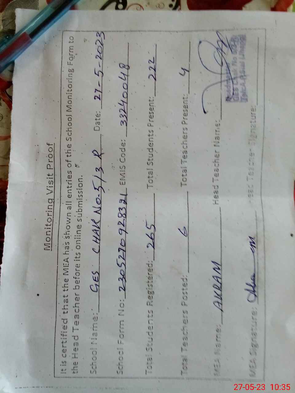 | EMIS Code: 33240048 | Name of School: GES CHAK NO. 5/3-R | |||