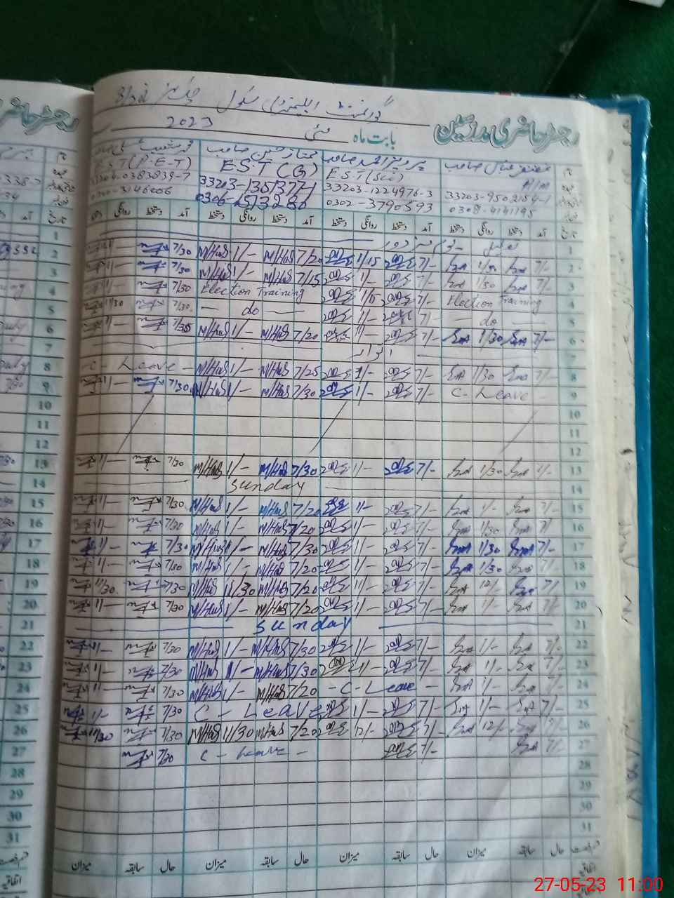 | CNIC | Full Name | Designation | R/C | Absence During Last Calender Month |