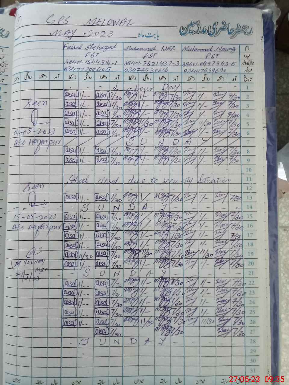 | Name: MU**** NA**** Designation: (School Headmaster's/Headmistress's) PST Phone/Cell Number: 03**** |