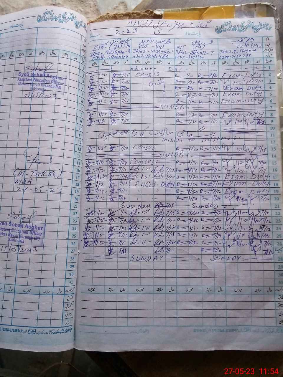 | CNIC | Full Name | Designation | R/C | Absence During Last Calender Month |