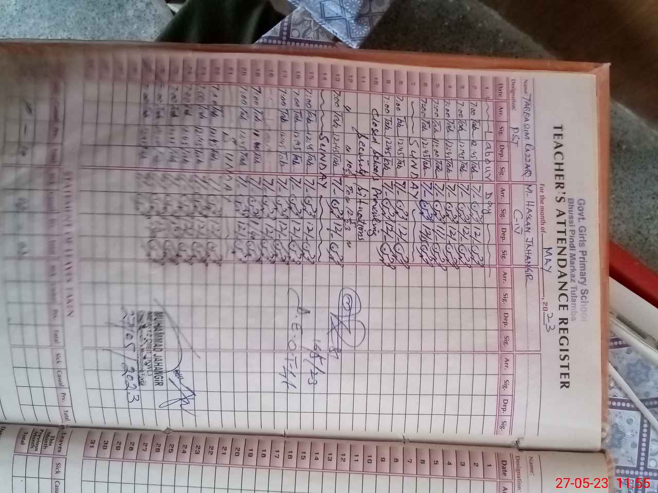 | Name: TA**** RA**** Designation: (School Headmaster's/Headmistress's) PST Phone/Cell Number: 03**** |