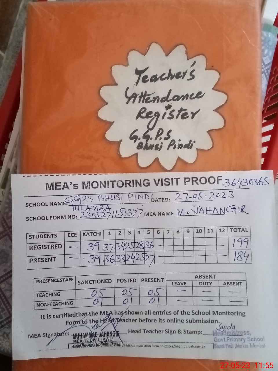 | Attendance Register | Head Teacher | MEA with School | Visit Proof |