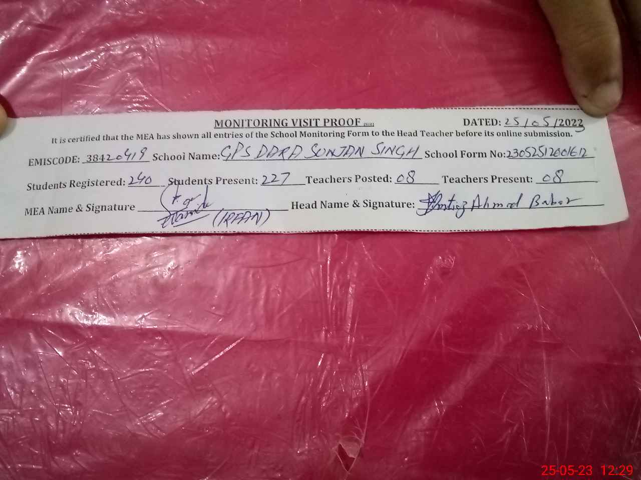 | Attendance Register | Head Teacher | MEA with School | Visit Proof |
