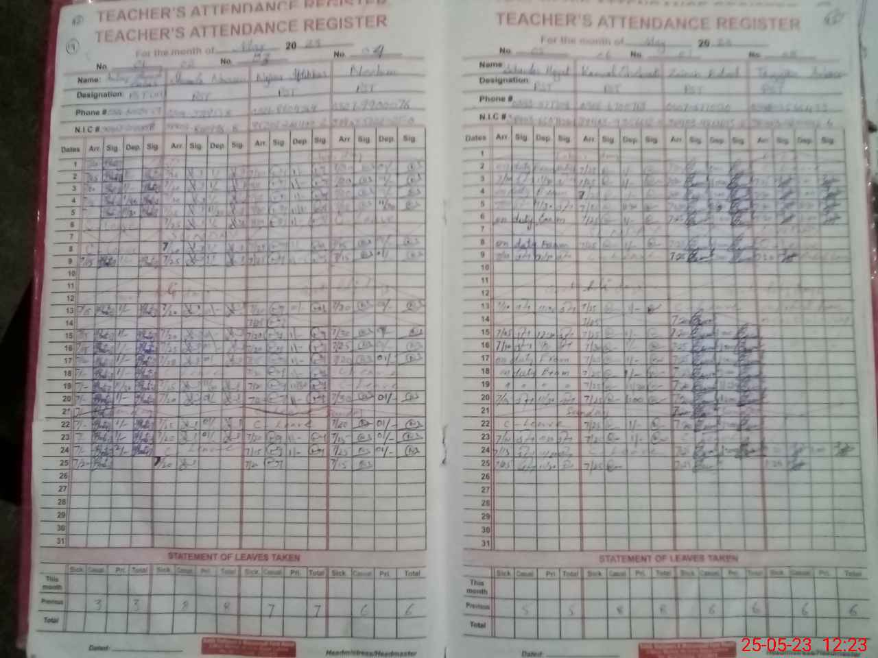 | CNIC | Full Name | Designation | R/C | Absence During Last Calender Month |