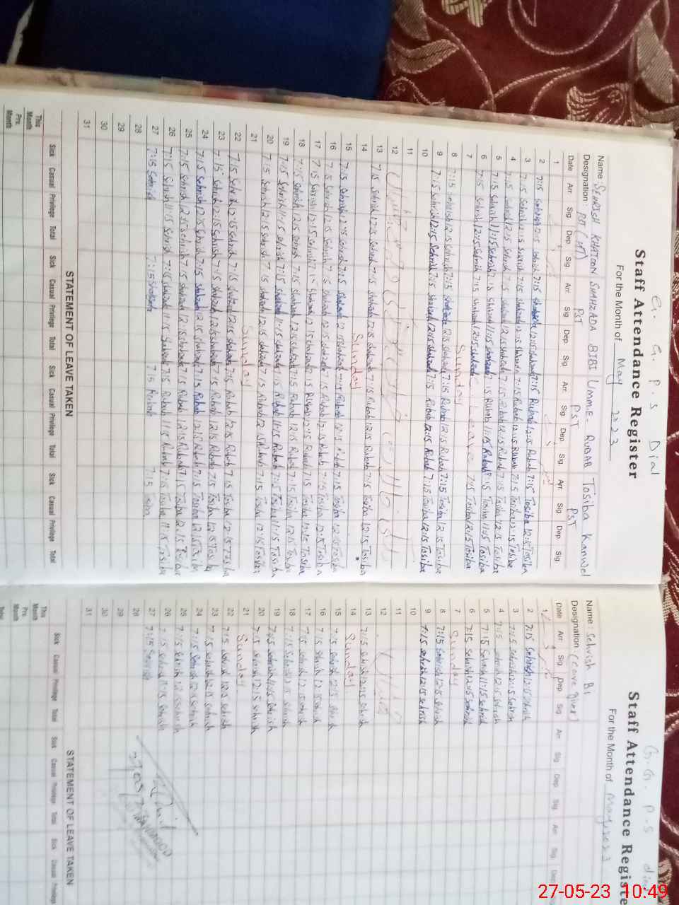 | Leave | Duty | Absent | Maternity | Medical | Ex- Pak |