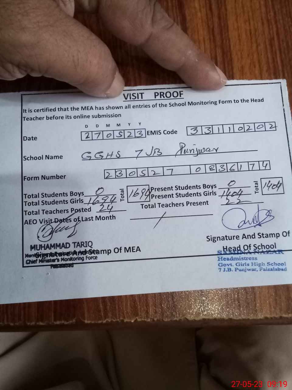 | EMIS Code: 33110202 | Name of School: GGHS CHAK 7 JB PUNJWAR | |||