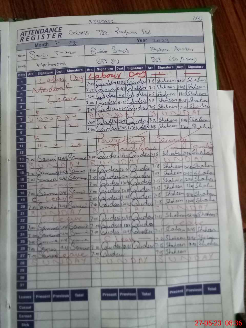 | 33**** | Fa**** Sh**** | SST | Regular | 0 | 0 | 0 | 0 | 0 | 0 | 0 | 0 | 0 | Exam Duty |