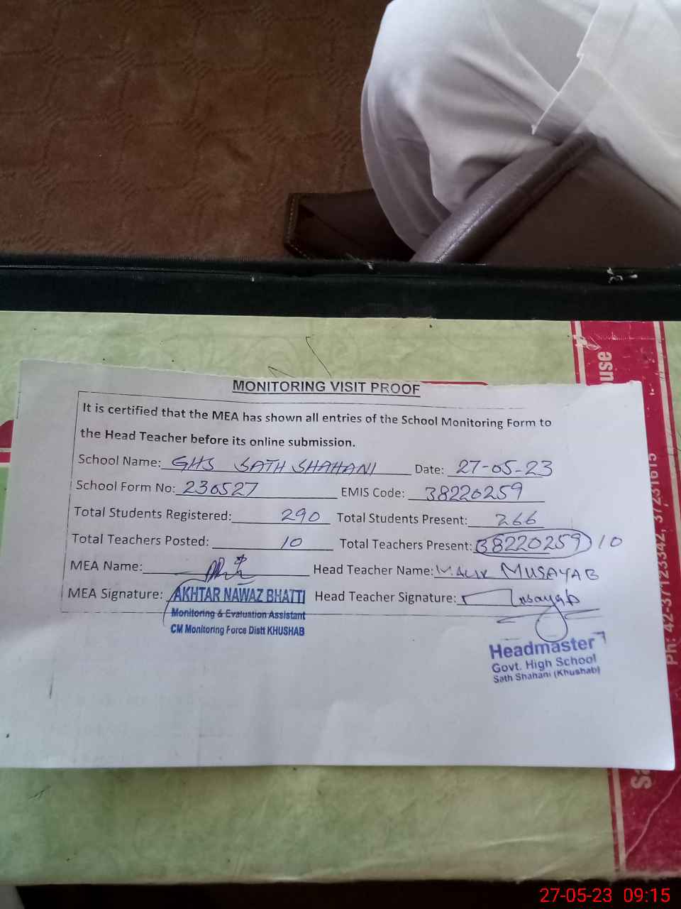 | EMIS Code: 38220259 | Name of School: GHS SATH SHAHANI | |||
