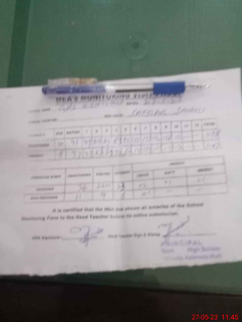 | Monitoring Date: 27-05-2023 | Start Time: 27-05-2023 11:24 AM | End Time: 27-05-2023 11:45 AM | Name of MEA: MU**** SA**** HU**** | |
