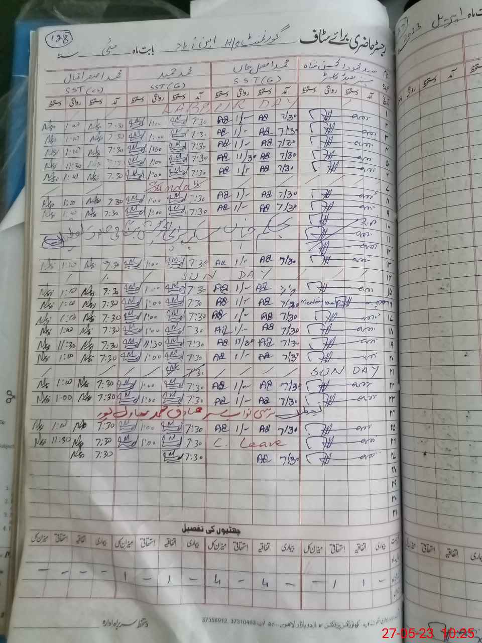 | 31**** | Mu**** Ak**** | PST | Regular | 1 | 0 | 0 | 0 | 0 | 0 | 0 | 0 | 1 | Casual |