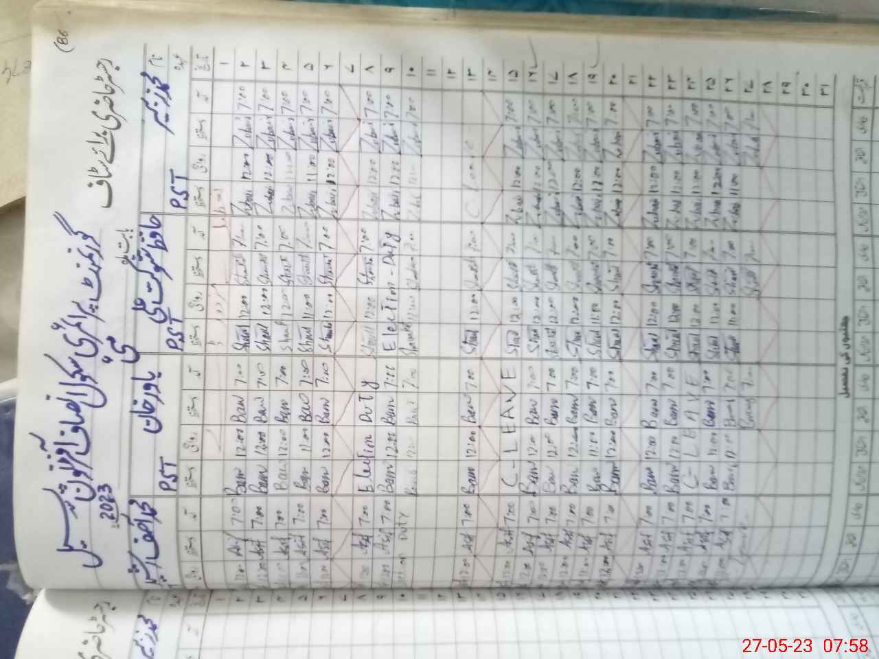 | Leave | Duty | Absent | Maternity | Medical | Ex- Pak |