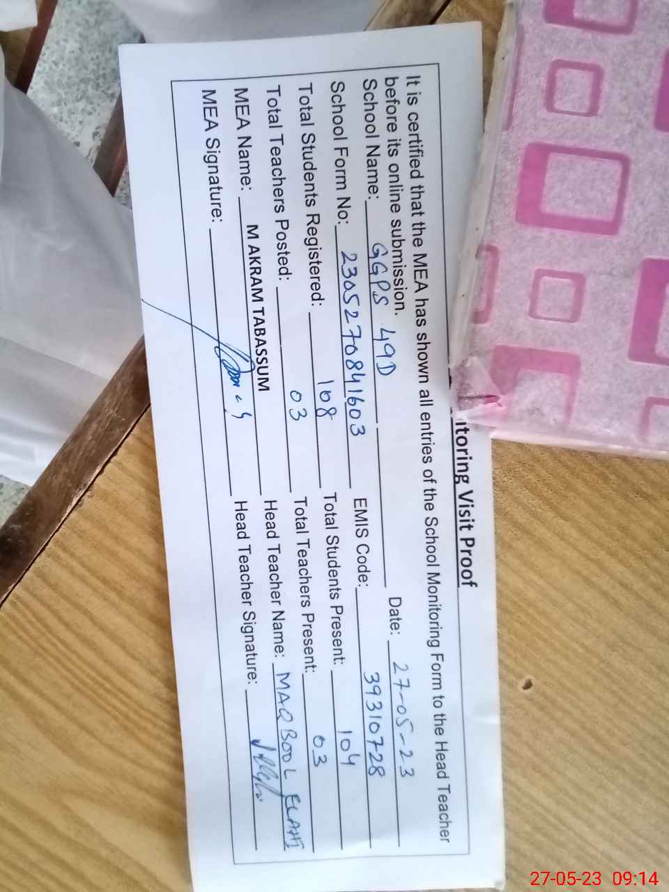 | EMIS Code: 39310728 | Name of School: GGPS 49-D | |||