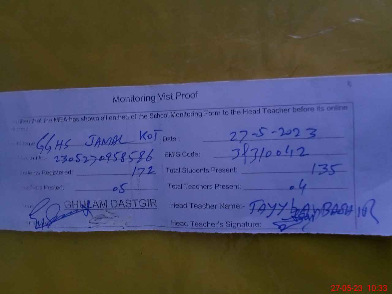 | EMIS Code: 39310042 | Name of School: GGHS JAMAL KOT | |||