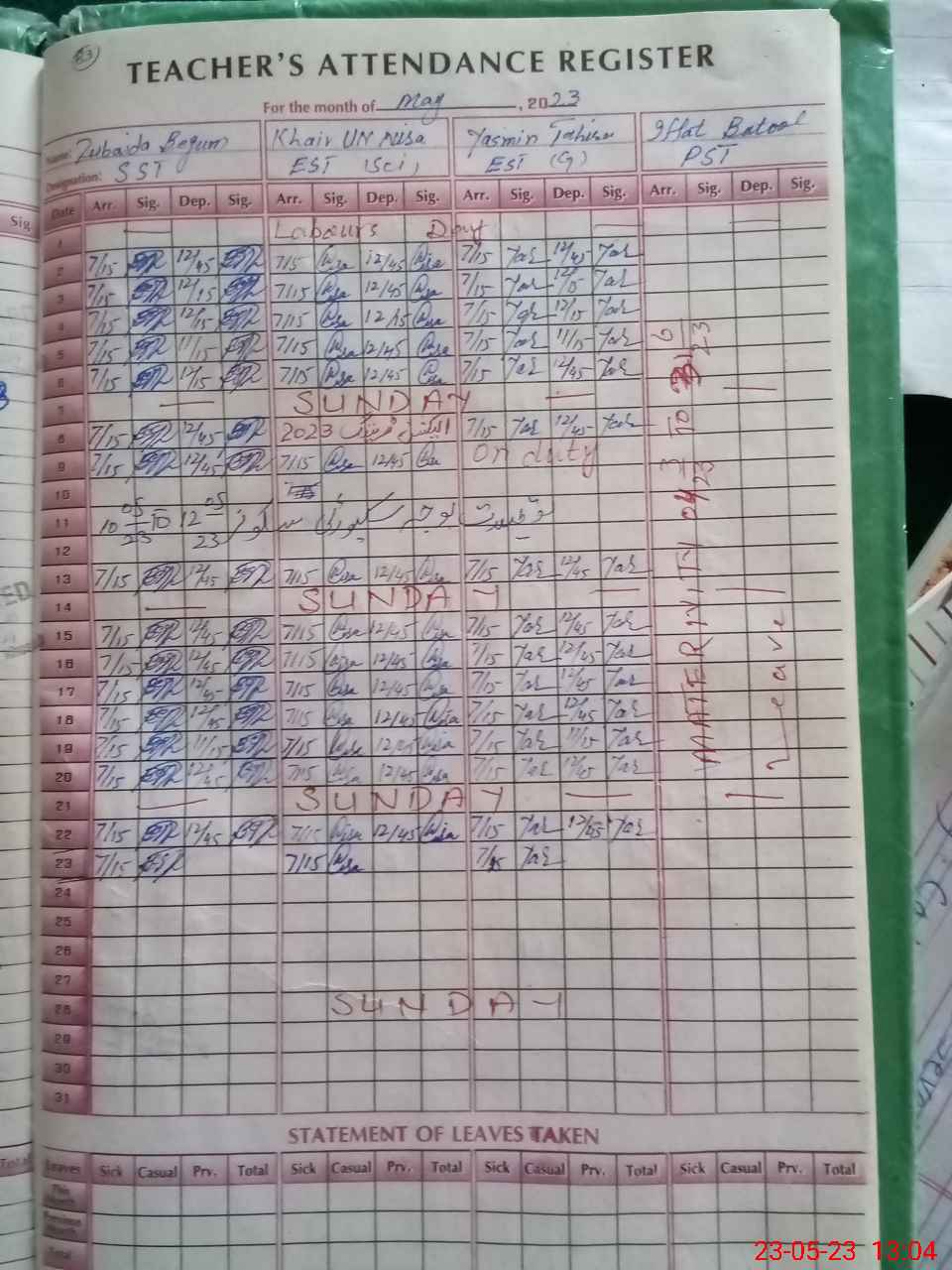| 38**** | Fa**** Ba**** | PST | Regular | 0 | 0 | 0 | 0 | 0 | 0 | 0 | 0 | 0 | Maternity |