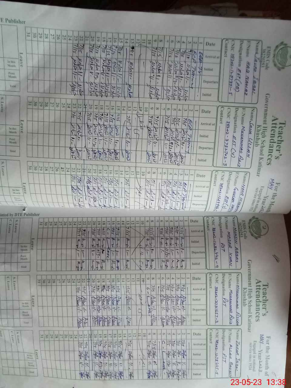| Name: Sh**** Al**** Designation: (School Headmaster's/Headmistress's) SST G Phone/Cell Number: 03**** |