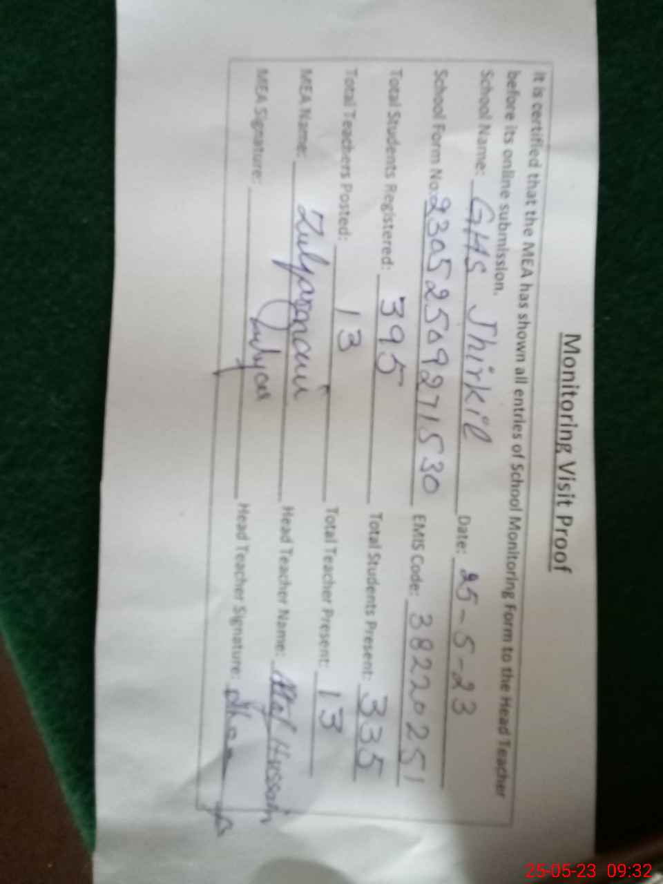 | EMIS Code: 38220251 | Name of School: GHS JHARKIL | |||