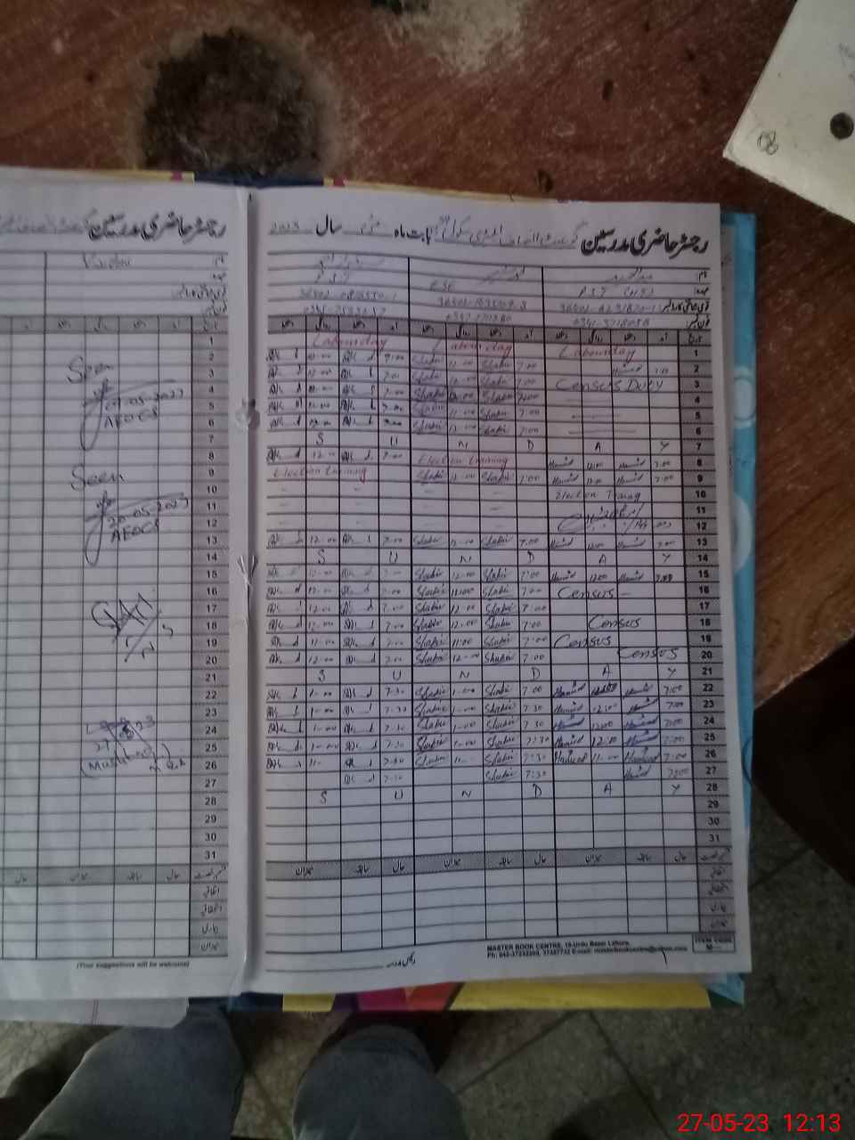 | CNIC | Full Name | Designation | R/C | Absence During Last Calender Month |