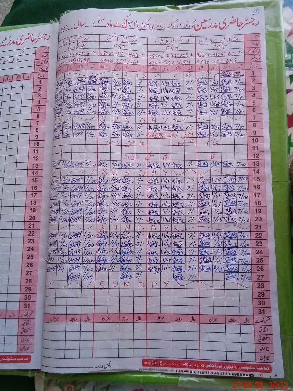 | Name: Sh**** Pe**** Designation: (School Headmaster's/Headmistress's) PST Phone/Cell Number: 03**** |