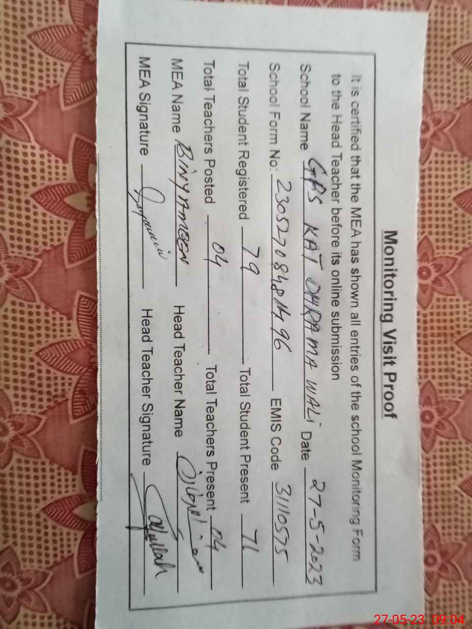 | EMIS Code: 31110575 | Name of School: GPS KAT DHARMAY WALI | |||