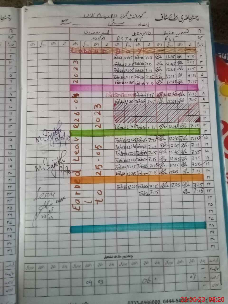 | CNIC | Full Name | Designation | R/C | Absence During Last Calender Month |
