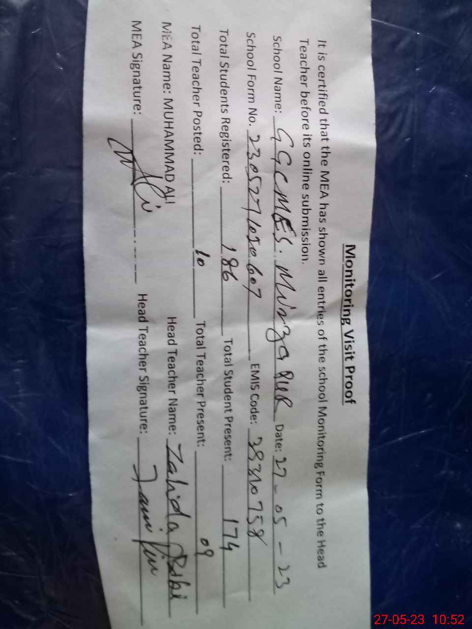 | EMIS Code: 39310758 | Name of School: GGCMES MIRZA PUR | |||