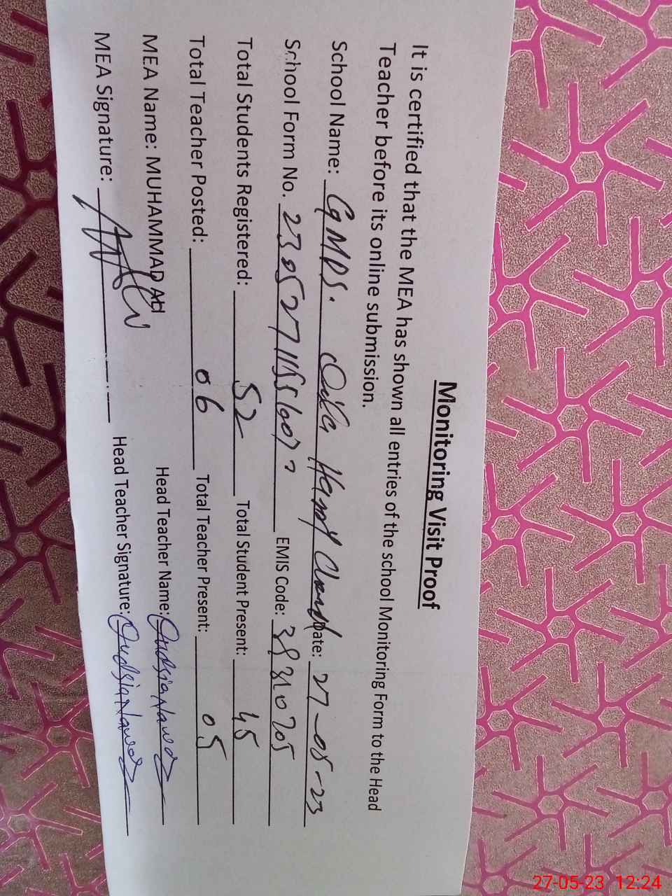 | EMIS Code: 39310705 | Name of School: GMPS QILA HARRI CHAND | |||