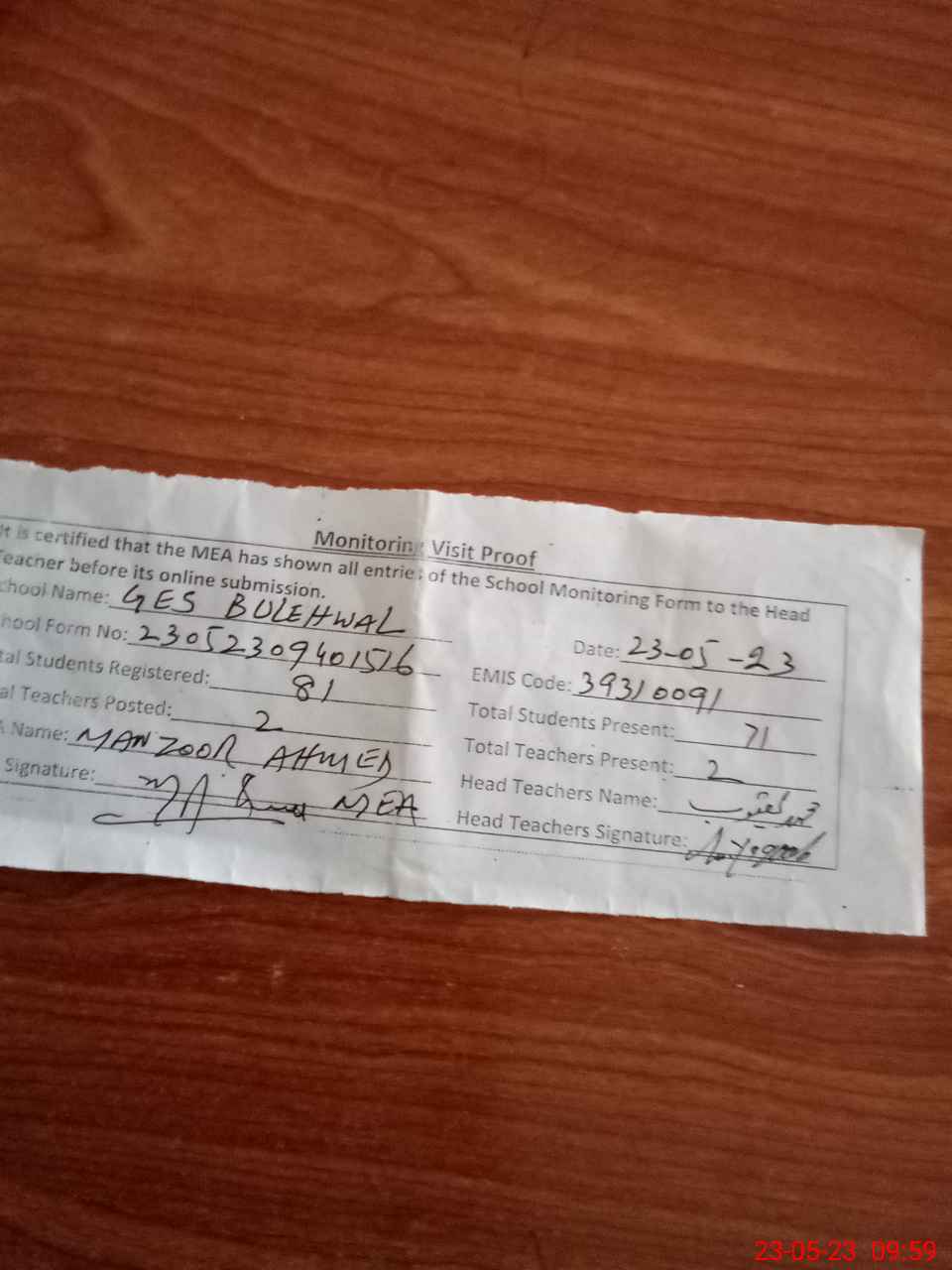 | EMIS Code: 39310091 | Name of School: GES BULEHWAL | |||