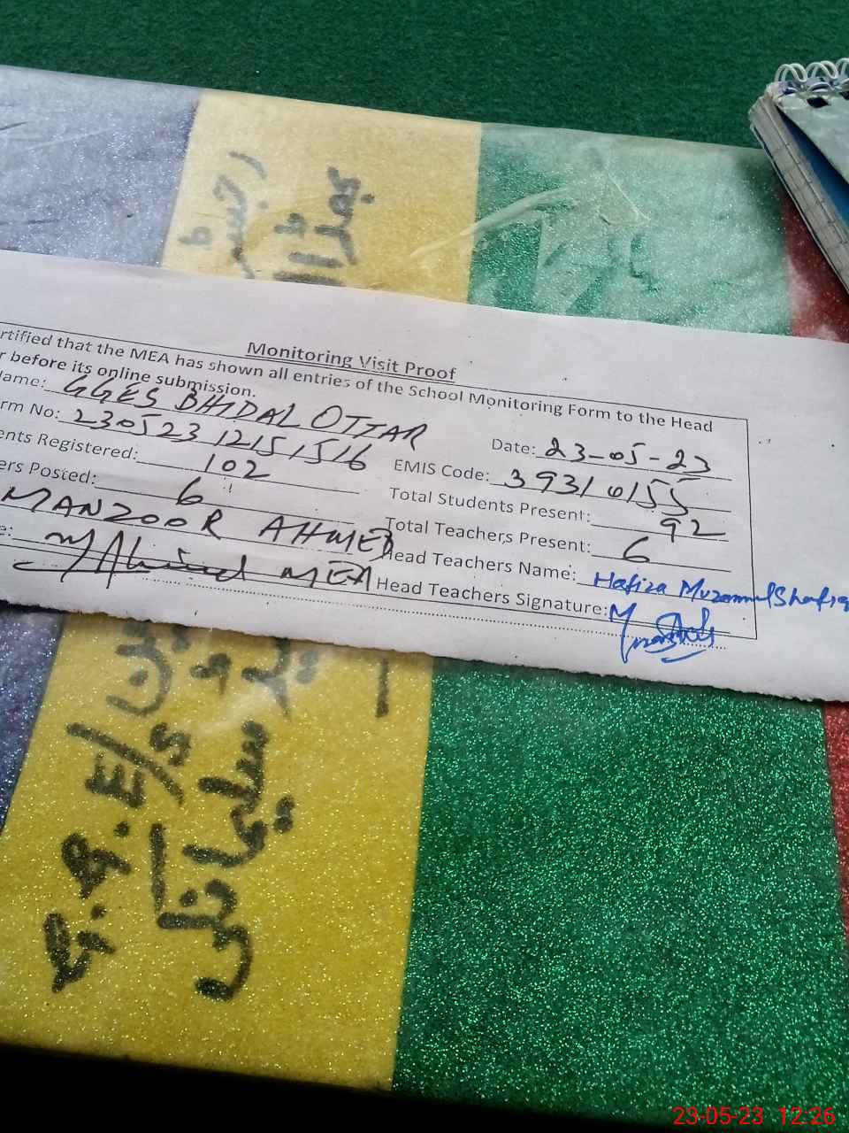 | EMIS Code: 39310155 | Name of School: GGES BHIDAL OTTAR | |||