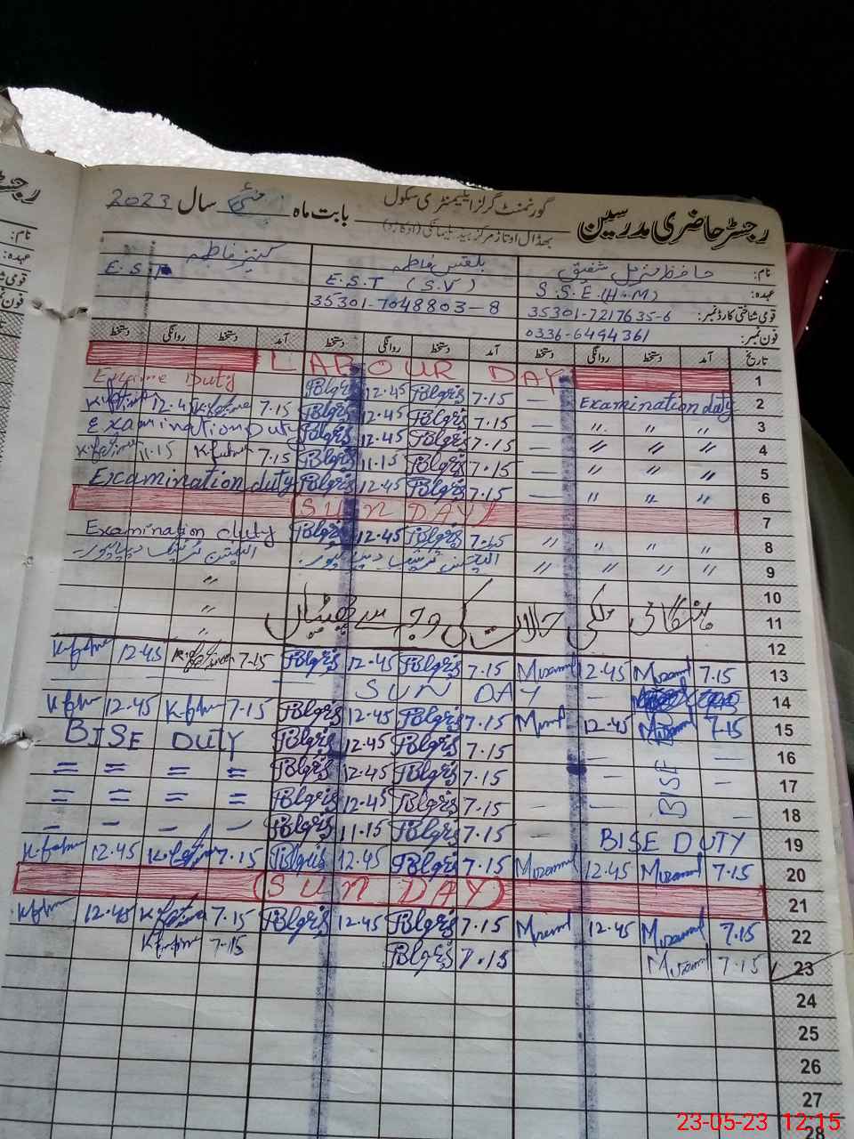 | Name: HA**** MU**** SH**** Designation: (School Headmaster's/Headmistress's) SSE ARTS Phone/Cell Number: 03**** |