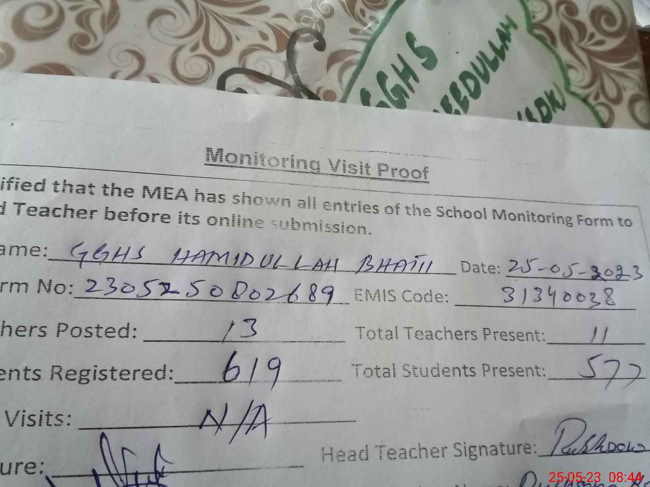 | EMIS Code: 31340038 | Name of School: GGHS BASTI HAMID ULLAH BHATTI | |||