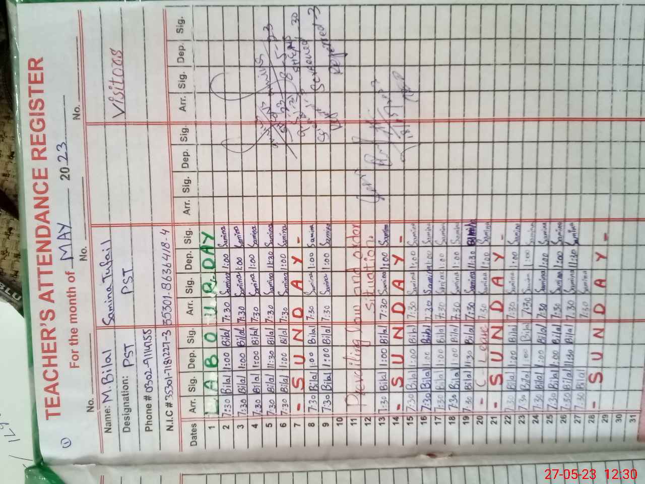 | Name: MU**** Bi**** Designation: (School Headmaster's/Headmistress's) PST Phone/Cell Number: 03**** |
