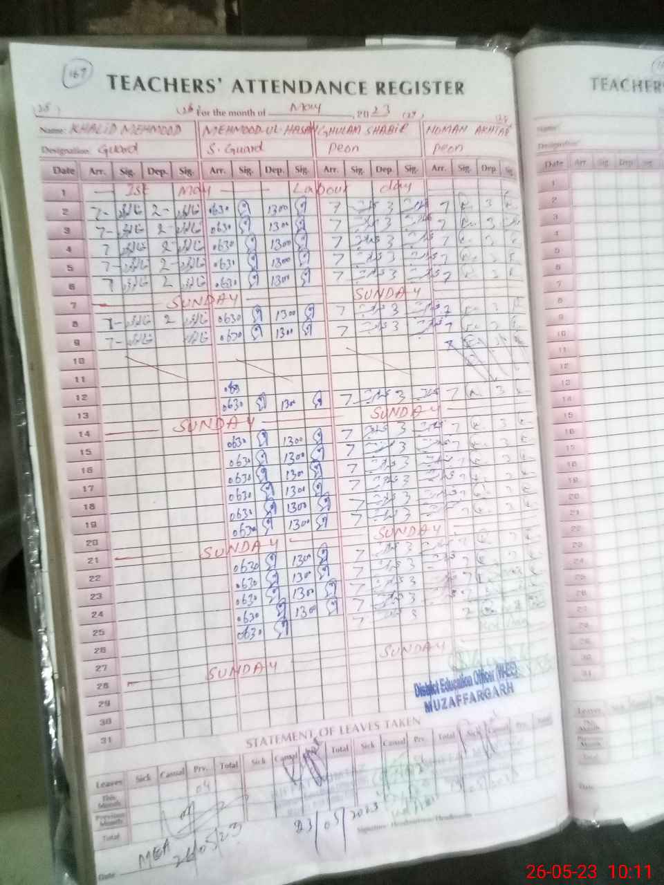 | 32**** | Ki**** Za**** | SST | Regular | 0 | 0 | 0 | 0 | 0 | 0 | 0 | 0 | 0 | Exam Duty |