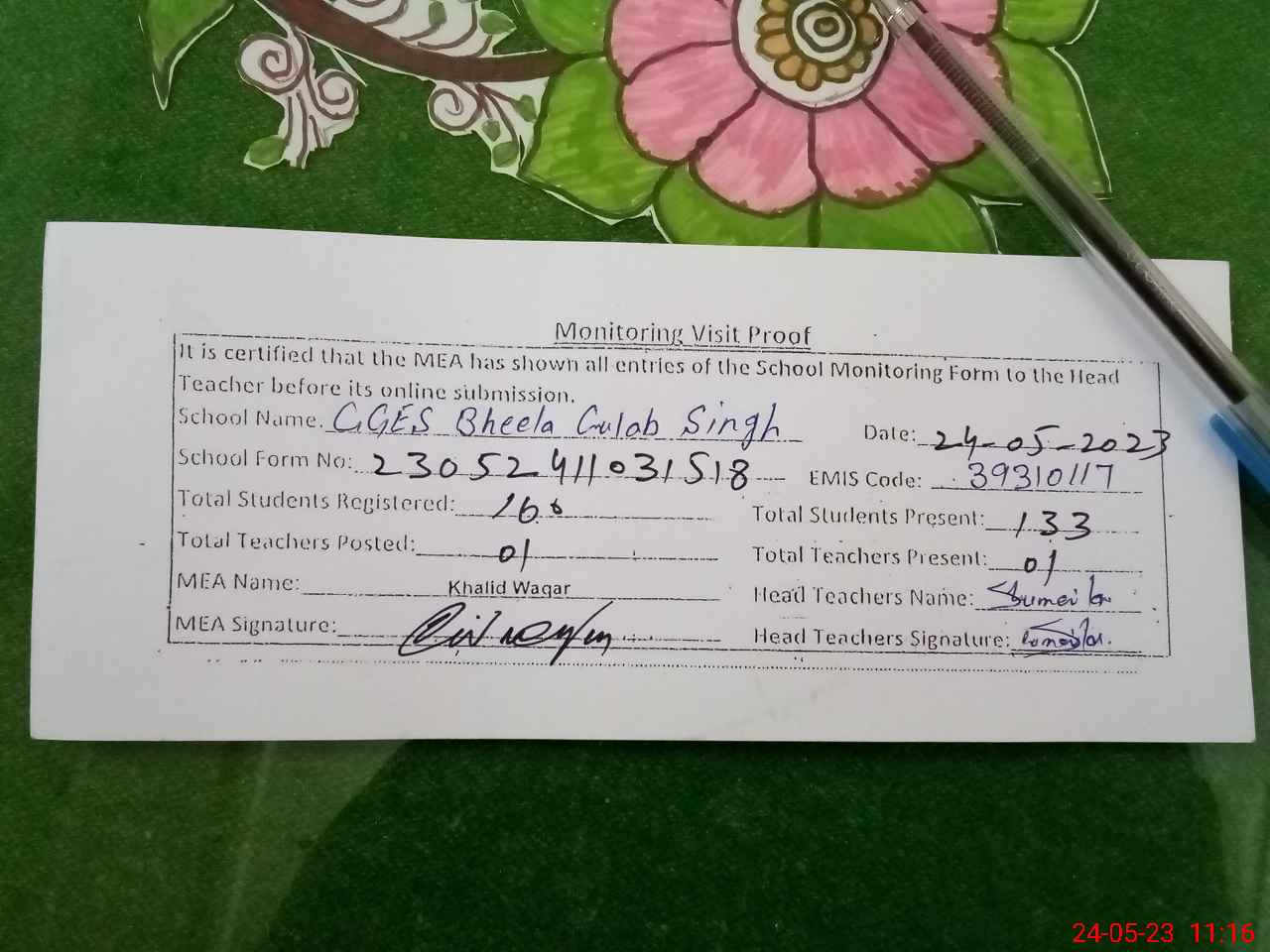 | EMIS Code: 39310117 | Name of School: GGES BHEELA GULAB SINGH | |||