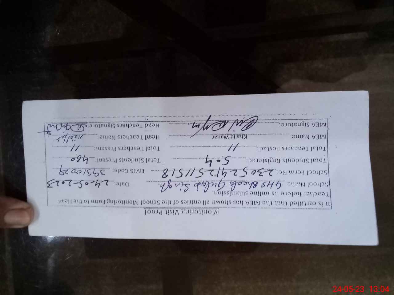 | Attendance Register | Head Teacher | MEA with School | Visit Proof |