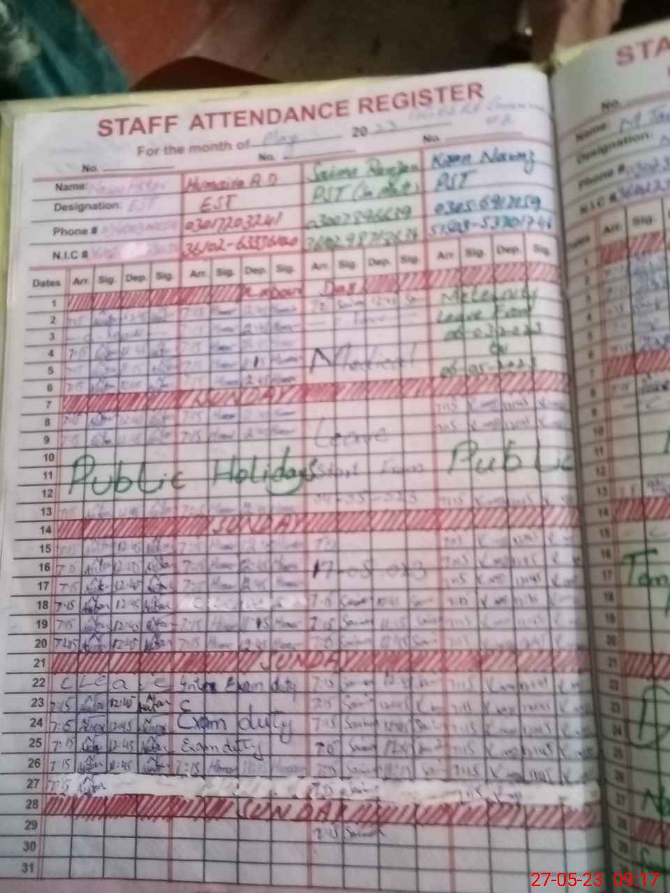 | CNIC | Full Name | Designation | R/C | Absence During Last Calender Month |