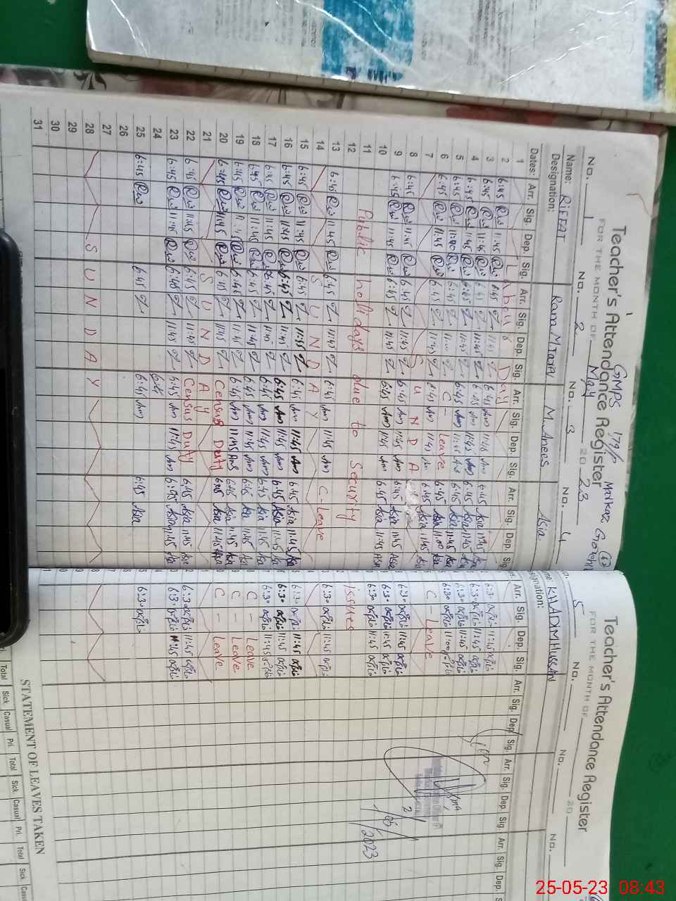 | CNIC | Full Name | Designation | R/C | Absence During Last Calender Month |
