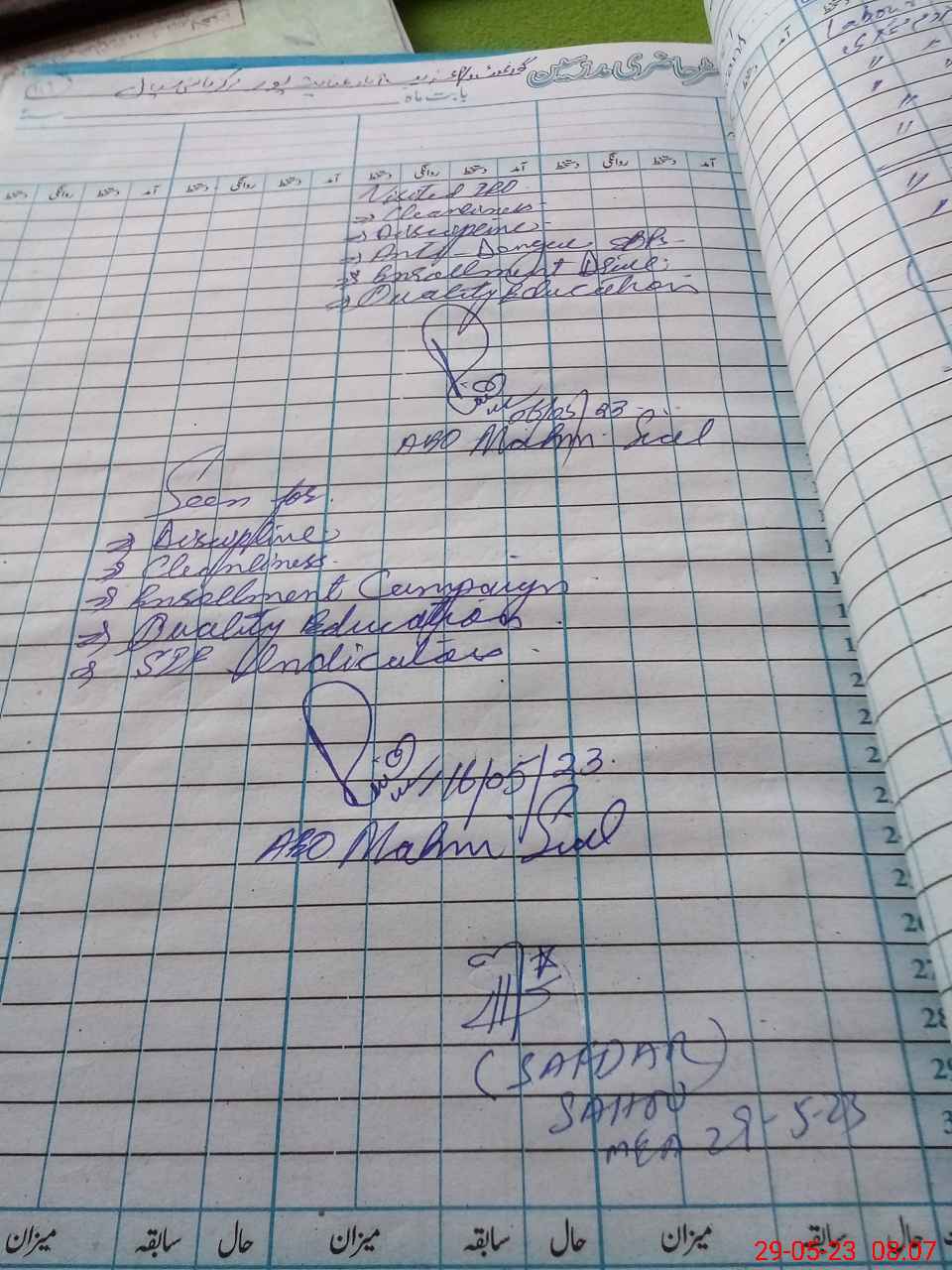 | School Visited by School Health & Nutrition Supervisor (No. of Visits) | 1 | Name1: | Raja Atif | Name2: | |