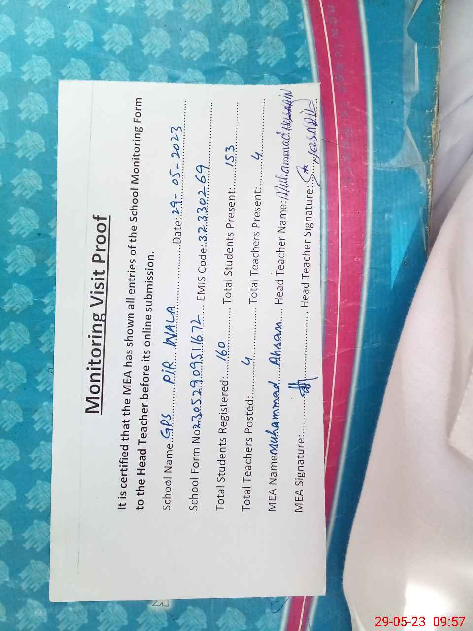 | EMIS Code: 32330269 | Name of School: GPS PIR WALA | |||