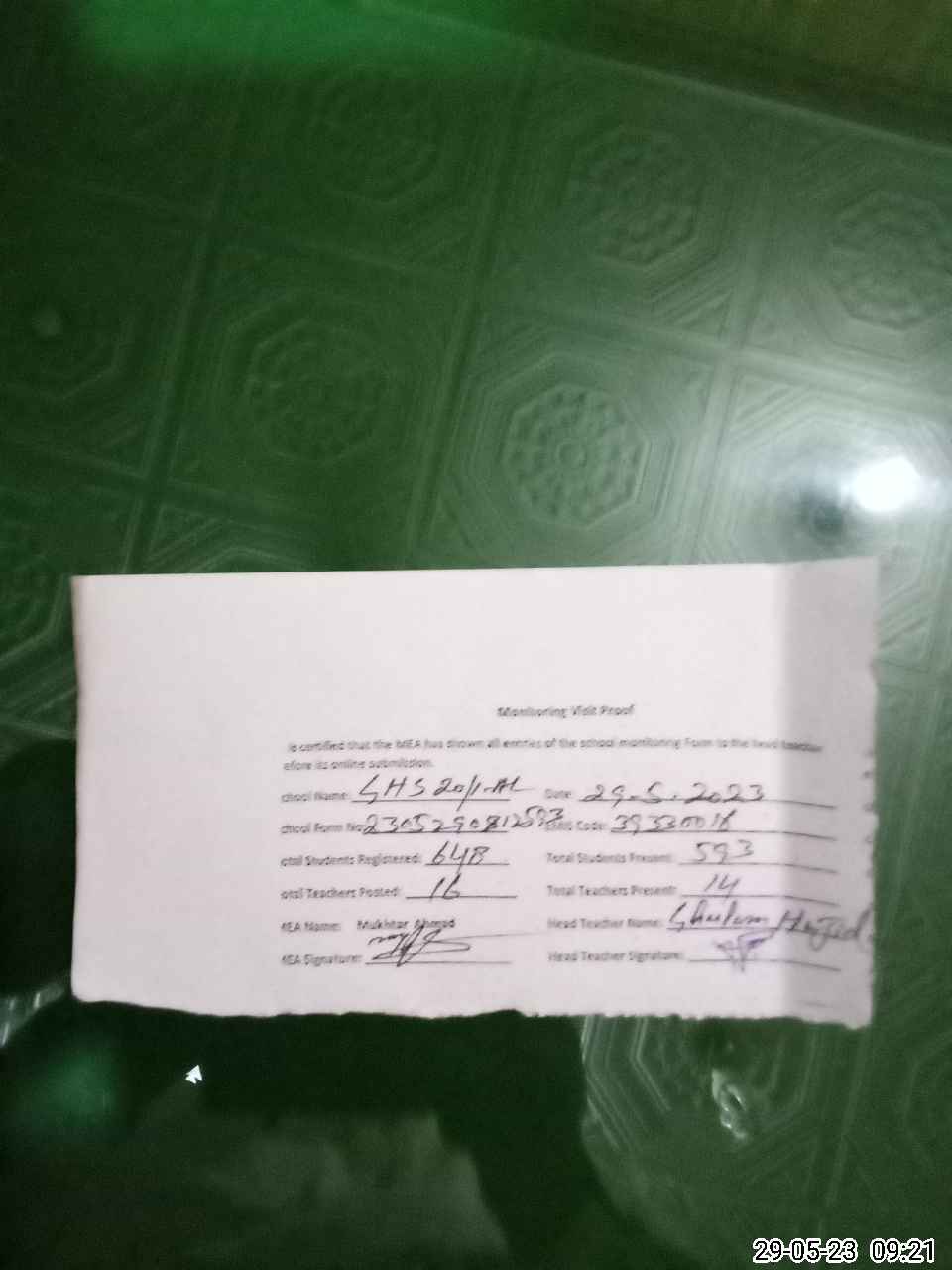 | EMIS Code: 39330016 | Name of School: GHS CHAK NO 20-1AL | |||