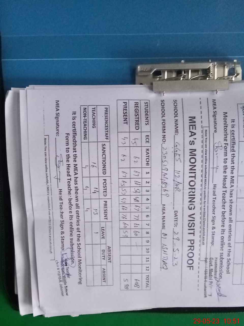 | Monitoring Date: 29-05-2023 | Start Time: 29-05-2023 09:57 AM | End Time: 29-05-2023 10:53 AM | Name of MEA: M.Is**** (S**** 03**** | |