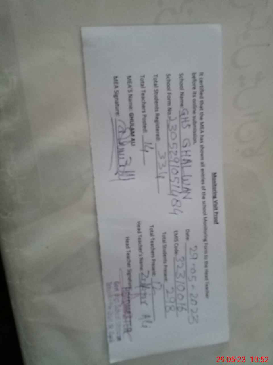 | EMIS Code: 32310016 | Name of School: GHS GHALWAN | |||