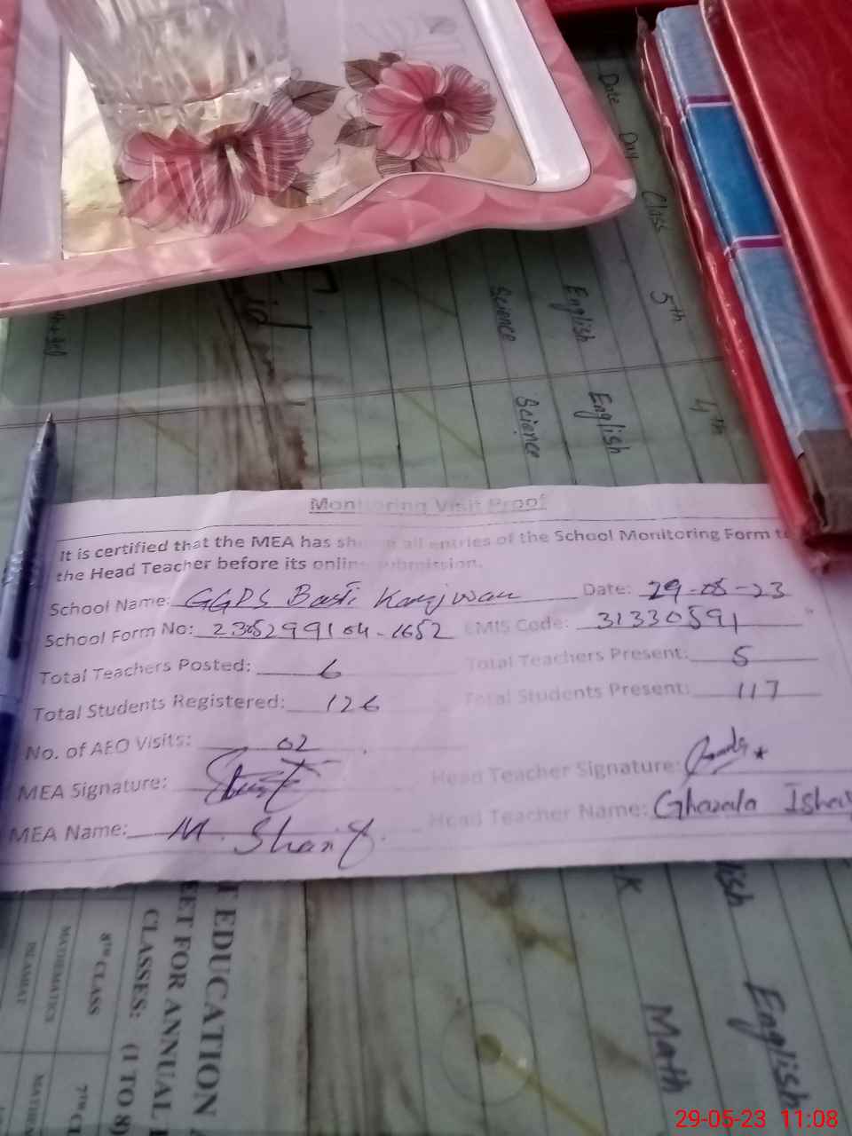 | EMIS Code: 31330591 | Name of School: GGPS BASTI KANJWAN | |||