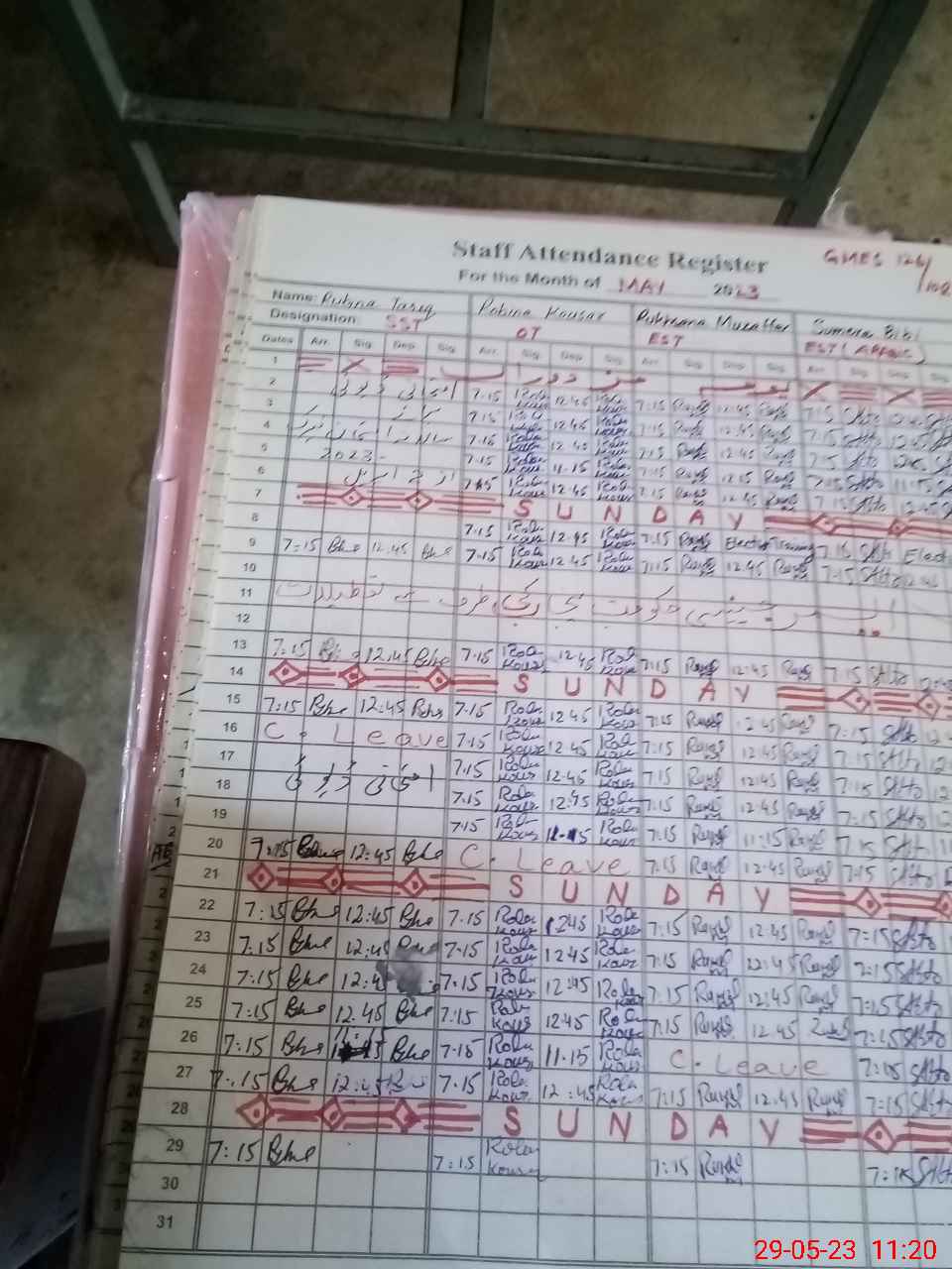| CNIC | Full Name | Designation | R/C | Absence During Last Calender Month |