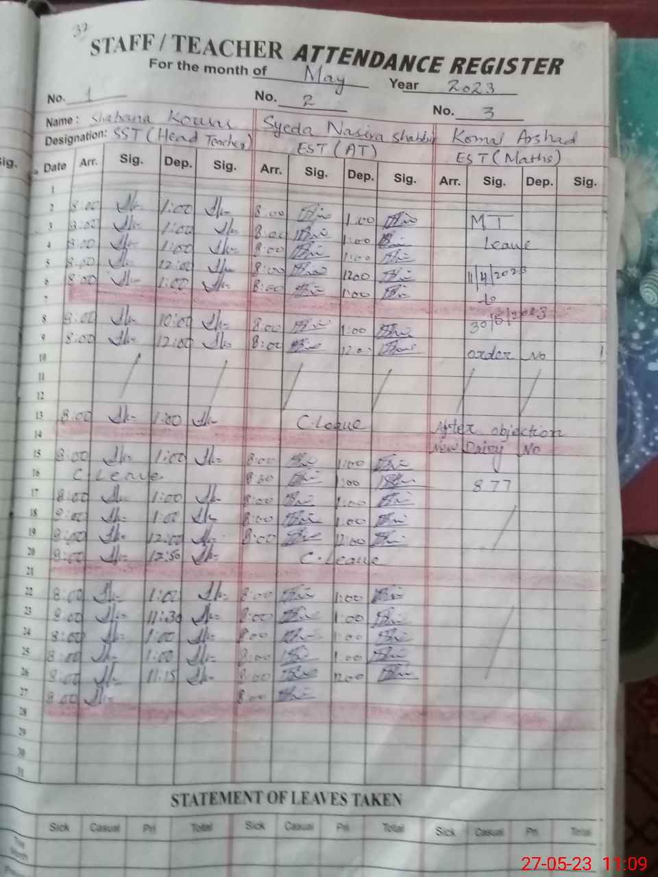 | 37**** | Ay**** Id**** | EST | Regular | 0 | 0 | 0 | 0 | 0 | 0 | 0 | 0 | 0 | Exam Duty |