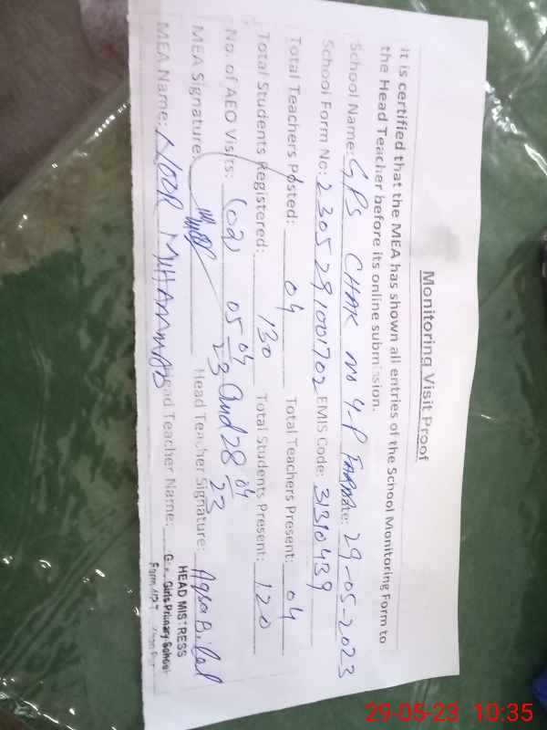 | EMIS Code: 31310439 | Name of School: GGPS CHAK NO 4/P | |||