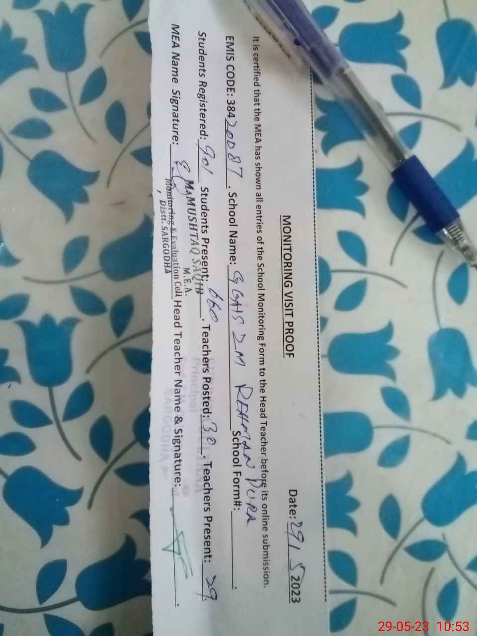 | EMIS Code: 38420087 | Name of School: GGHS ZM REHMAN PURA ROAD SGD | |||