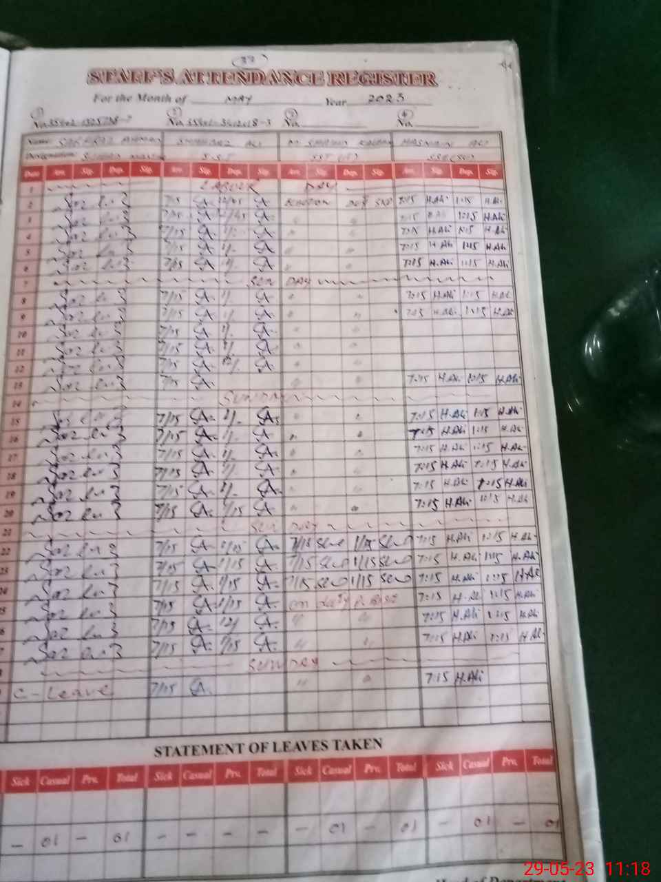 | 35**** | Mu**** Ar**** | Regular | 0 | 13 | 0 | 0 | 0 | 0 | 0 | 0 | 0 | Exam Duty | |
