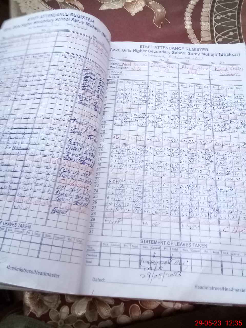 | 54**** | Ab**** Gh**** | S GUARD | Regular | 0 | 0 | 0 | 0 | 0 | 0 | 0 | 0 | 0 | Casual |